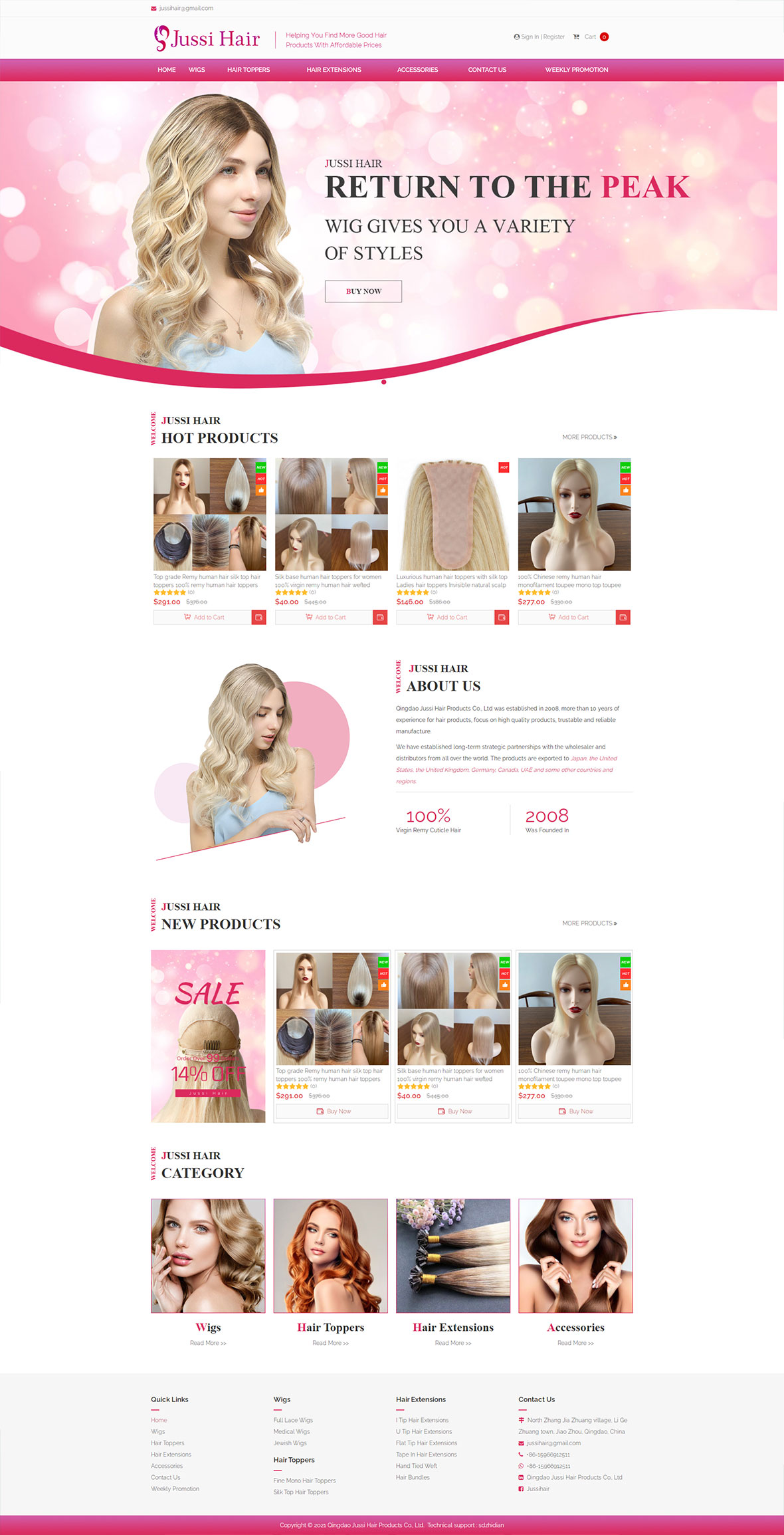 今天給大家分享的是一個(gè)假發(fā)的商城網(wǎng)站,網(wǎng)站用的粉色作為主色調(diào),粉色是很時(shí)尚的顏色,通常被認(rèn)為是很女性的顏色,代表時(shí)髦和活潑。banner部分用靚麗的背景色彩加上光圈的點(diǎn)綴打造一種夢(mèng)幻般的感覺(jué),吸引視線停留。弧線也側(cè)面體現(xiàn)了女性的柔美以及頭發(fā)的弧度,比較符合行業(yè)特色。接下來(lái)選用了幾款公司的熱門(mén)產(chǎn)品進(jìn)行展示,點(diǎn)擊按鈕可以快速加入購(gòu)物車(chē)。公司介紹部分用數(shù)字滾動(dòng)的方式展現(xiàn),促銷(xiāo)活動(dòng)海報(bào)可以利用客戶(hù)的緊迫感和需求來(lái)達(dá)到我們的目的。產(chǎn)品分類(lèi)部分選用了符合分類(lèi)的圖片,點(diǎn)擊按鈕可以進(jìn)入內(nèi)頁(yè)查看更多產(chǎn)品。